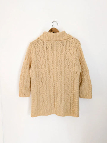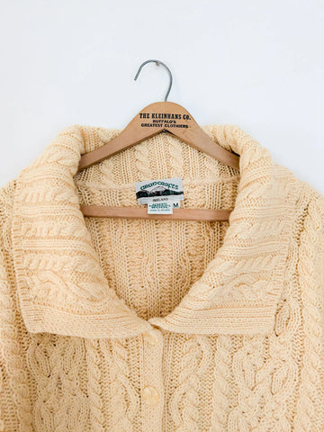 80s-90s cream colored wool cardigan sweater. Tiny mend at front. Shown on an xs but will fit up to a large.