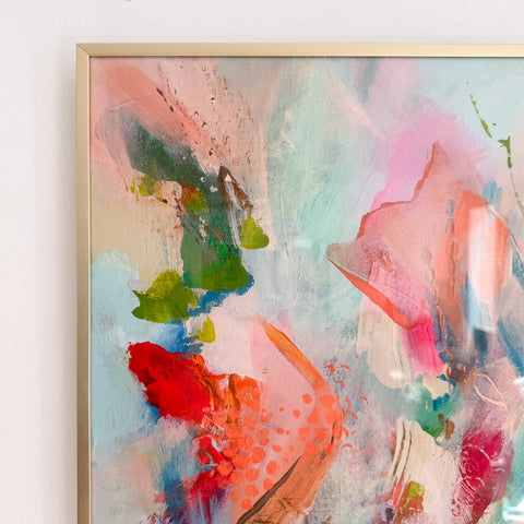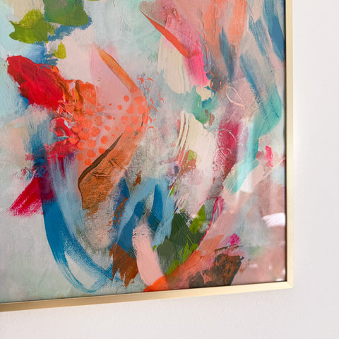 Abstract painting by Megan Walsh - Acrylic on Paper - Gold finish frame