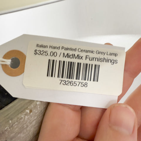 Mid century modern Italian hand painted ceramic grey lamp from Midmix Furnishings.
