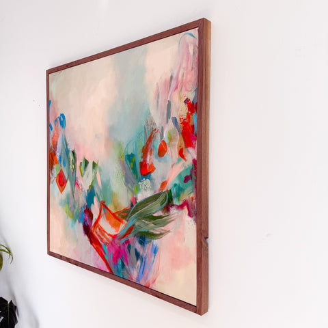 Abstract painting by Megan Walsh - Acrylic on Canvas - Walnut Frame