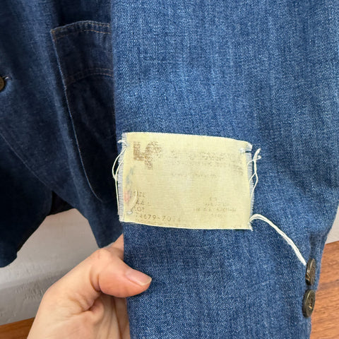 .A classic Levi’s Panatela blazer in a medium-wash denim—structured yet easy to wear. Features include: