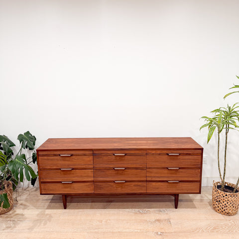 Mid Century Walnut Low 9 Drawer Dresser