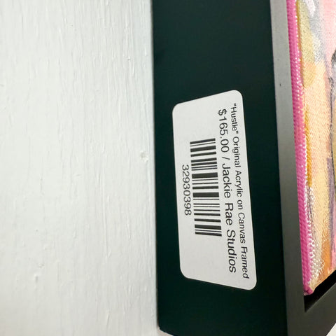 "Hustle" 11x14" original acrylic painting by Jackie Ramdin depicting the energy of a crowd with the use of vibrant pinks, oranges, violets and greens.
