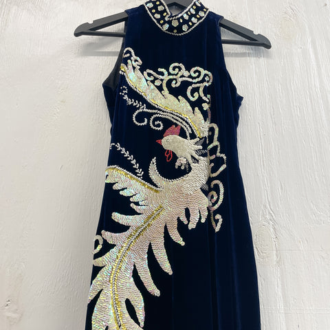 Vintage Velvet Cheongsam Dress w/Sequin