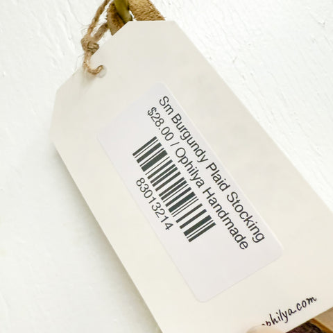 Ophilya Handmade Small Stocking — Burgundy Plaid / Brown Backing