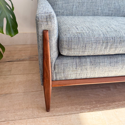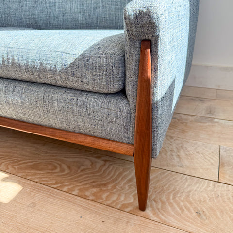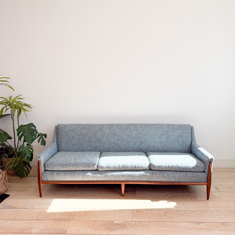 Mid Century Sofa w/ New Blue Tweed Upholstery