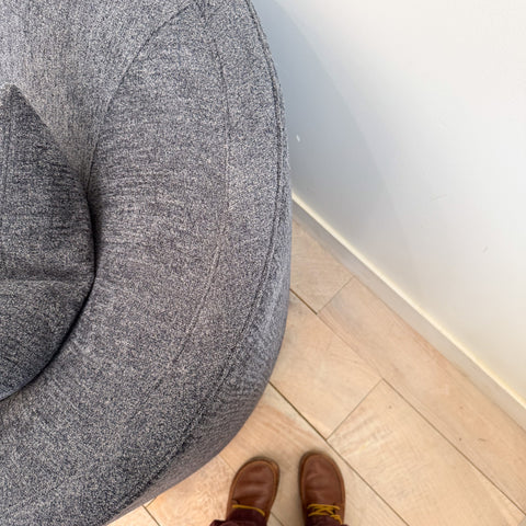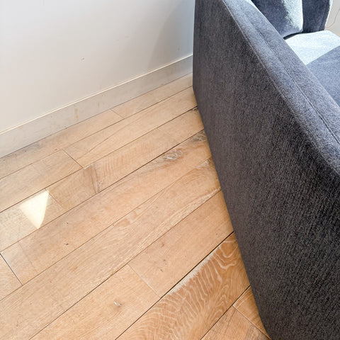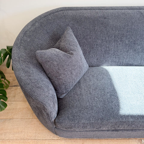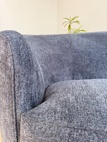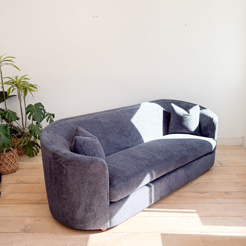 Vintage curved back sofa - New blue/grey chenille upholstery.